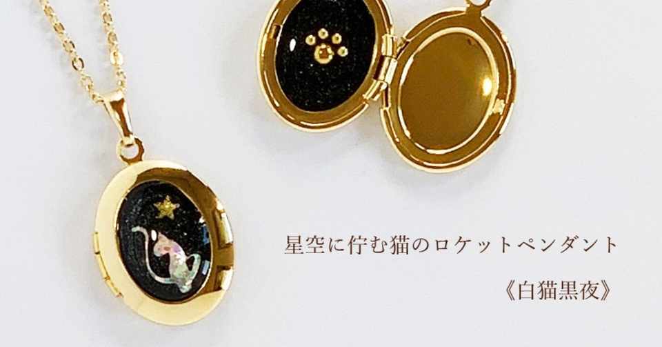 星空に佇む猫のロケットペンダント 白猫黒夜 旅する飾り屋 I B Melody Note