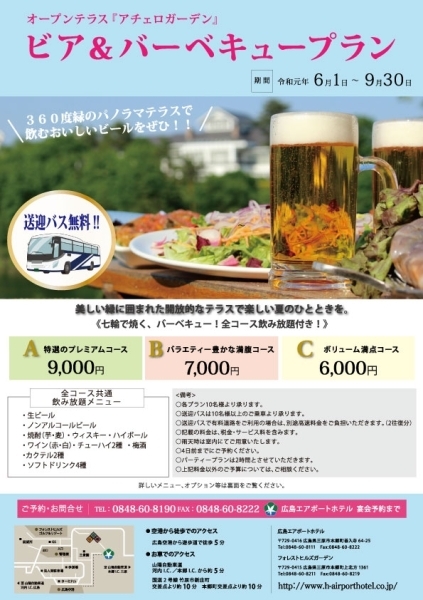 松山全日空ホテル最上階に夏季限定で出現する上質のテラス 屋外の開放的な雰囲気の中 多彩なの料理とドリンクが楽しめる ビール以外の飲み物や ノンアルコールドリンクも充実し女性にもおすすめ ビアガーデン ビアホール ノンアルコールドリンク