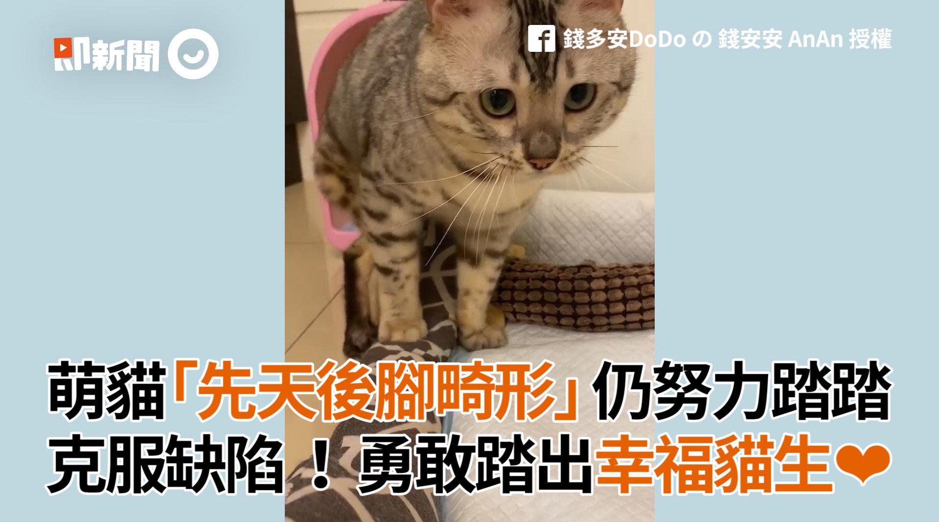 萌猫先天后脚畸形仍努力踏踏 克服缺陷踏出幸福猫生